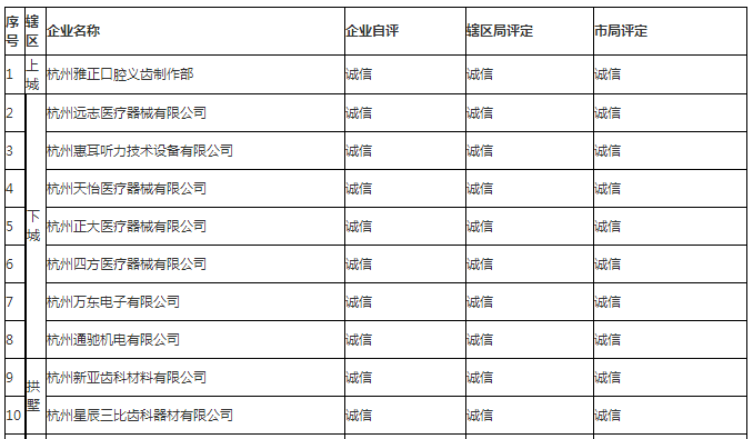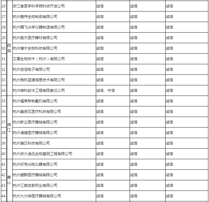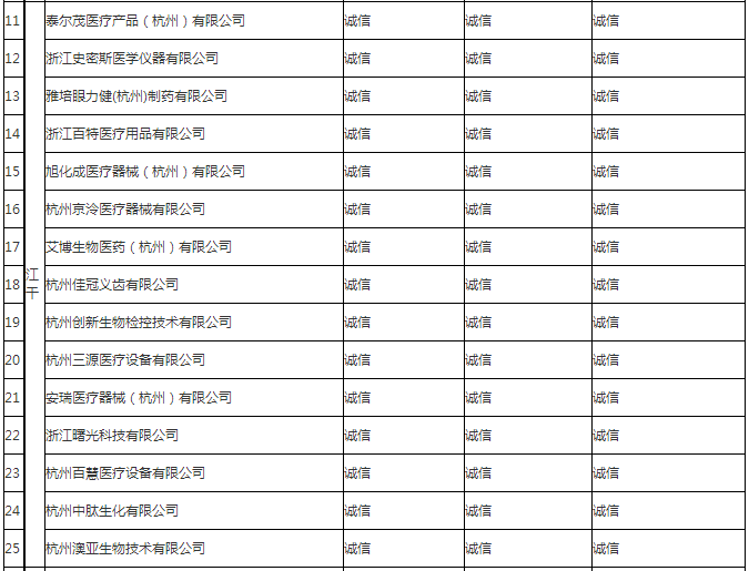 杭州市2011年度質(zhì)量信用誠(chéng)信等級(jí)醫(yī)療器械生產(chǎn)企業(yè)名單