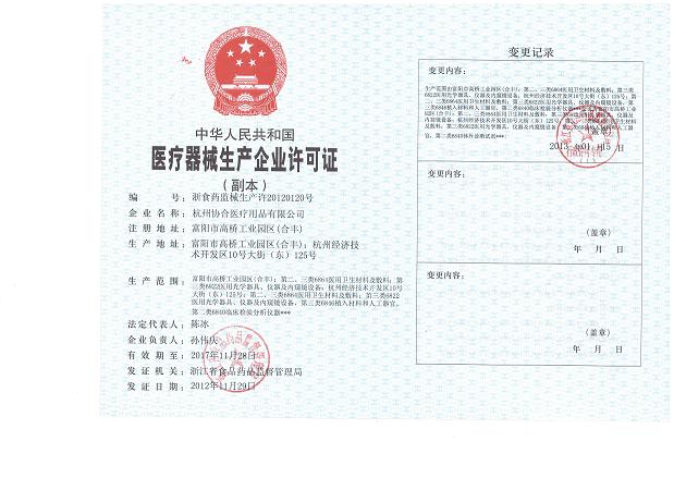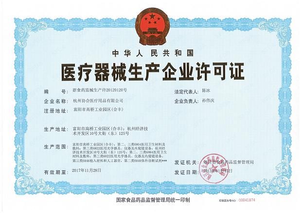 2012年11月29日,杭州協(xié)合醫(yī)療用品有限公司成功換領(lǐng)了《醫(yī)療器械生產(chǎn)企業(yè)許可證》,增加了生產(chǎn)場地,擴(kuò)大了生產(chǎn)范圍:增加第三類6846植入材料和人工器官,第二類似6840臨床檢驗分析儀器;真正實現(xiàn)了富陽、下沙兩地生產(chǎn)的管理模式。我們從去年開始著手開展生產(chǎn)許可證的換證工作,未雨綢繆,全面統(tǒng)籌,確定了換證工作是今年年度工作的重中之重,實行自查、互查、內(nèi)審制度推進(jìn)落實。從企業(yè)責(zé)任人、生產(chǎn)負(fù)責(zé)人到部門責(zé)任人、再到每一名員工,多層面、多渠道,加大力度做好生產(chǎn)許可證換證工作必要性的宣傳,“常態(tài)化”落實各項安全工作。一是嚴(yán)格按浙江省食品藥品監(jiān)督管理局生產(chǎn)企業(yè)生產(chǎn)許可證變更及換證工作要求實施,充分發(fā)揮全員的積極性;二是落實安全管理措施、加強(qiáng)內(nèi)部整改,隨時接受各級領(lǐng)導(dǎo)、管理部門的現(xiàn)場審核。富陽基地穩(wěn)步運(yùn)行,不斷成長與進(jìn)步,將“質(zhì)量第一,管理優(yōu)先,建和諧企業(yè),創(chuàng)協(xié)合品牌”的質(zhì)量方針貫徹落實;下沙新基地引進(jìn)大型現(xiàn)代化生產(chǎn)線,安全生產(chǎn)管理水平也相應(yīng)得到了提高。換證現(xiàn)場審核在富陽及下沙廠區(qū)同時進(jìn)行,以實際行動贏得了藥監(jiān)部門的認(rèn)可,順利通過了換證!